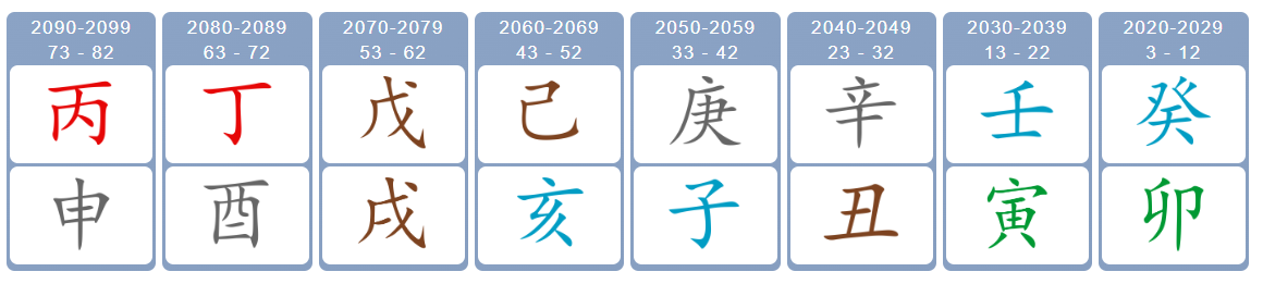 2-я часть: Столпы Удачи показывают нам периоды времени, каждые 10 лет, на протяжении которых энергии и состояние удачи человека меняются: приходят новые возможности или трудности.