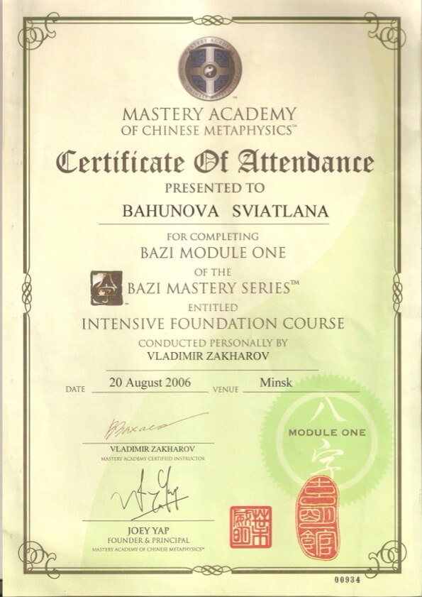 Но особую любовь я испытываю к трем наукам: Цзы Вэй Доу Шу, И Цзин и Ци Мэн Дунь Цзя и активно использую их в консультировании предпринимателей и не только.